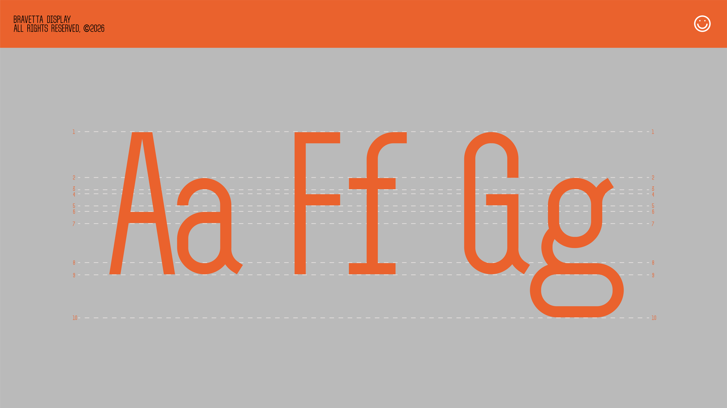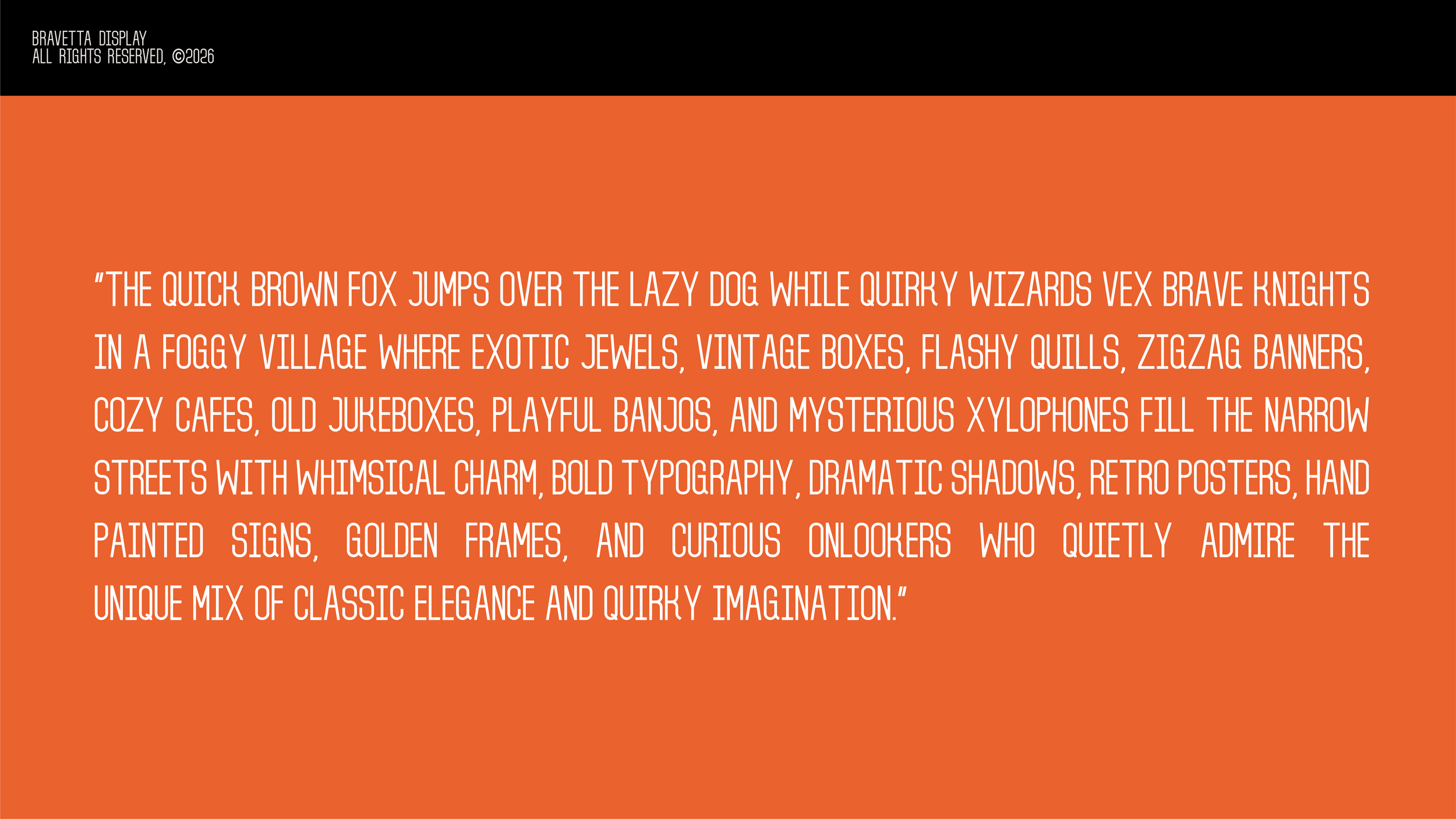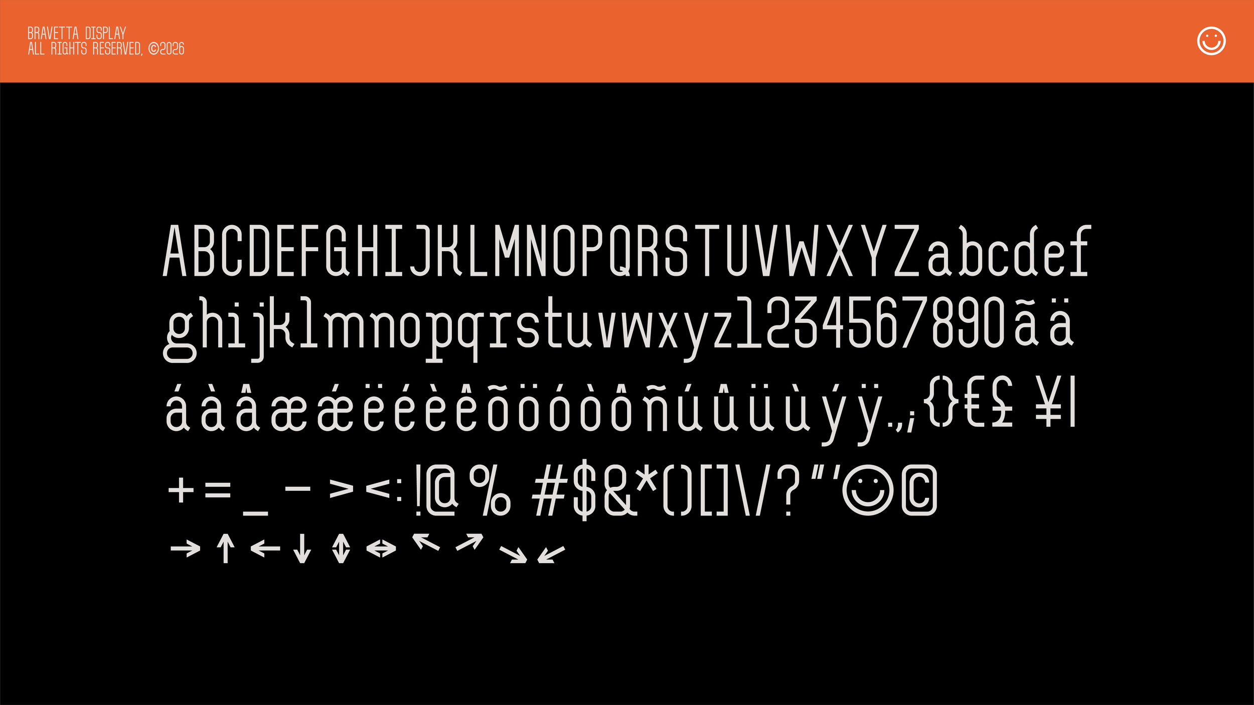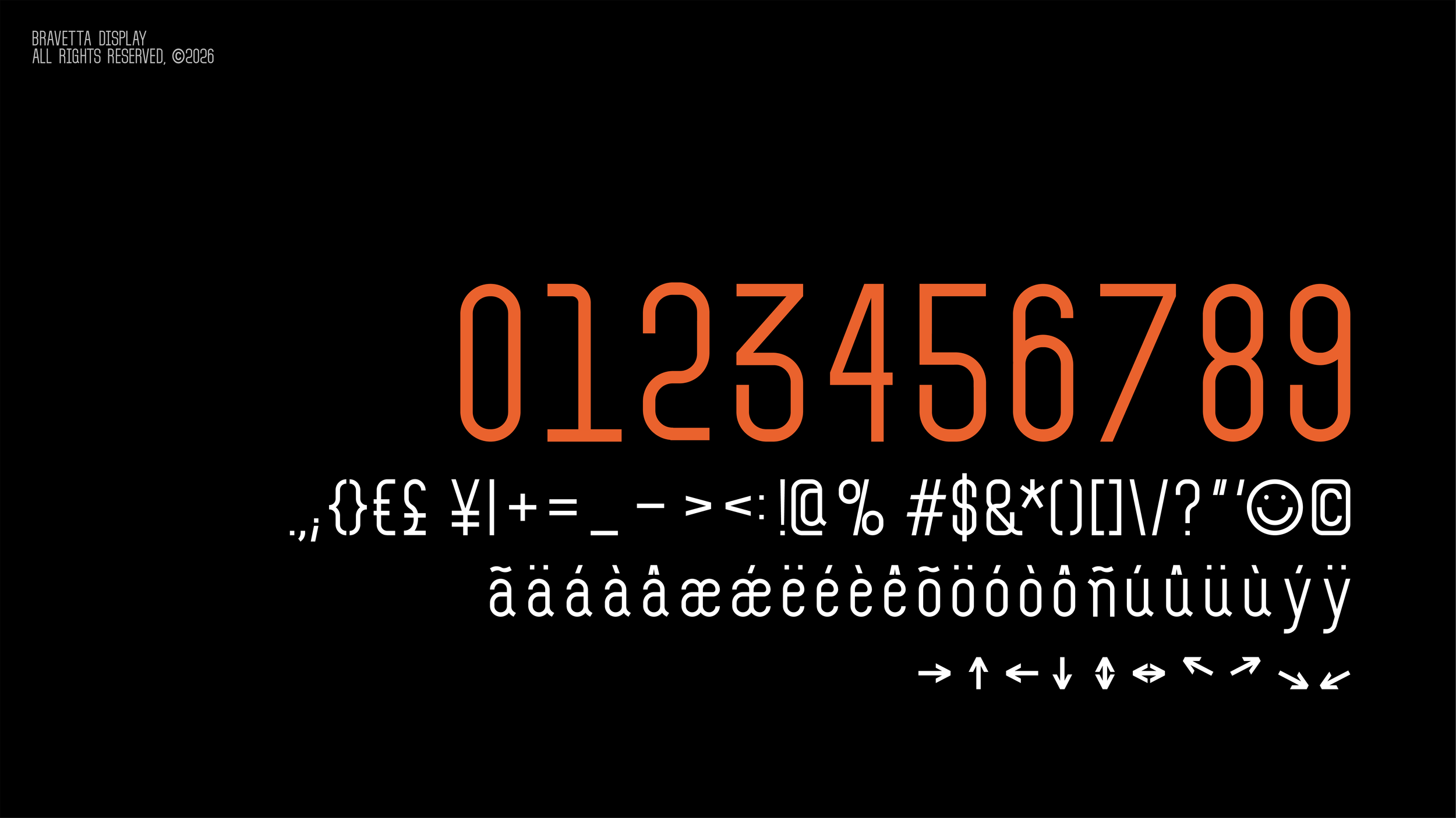 and includes an extensive set of symbols. Bravetta Display supports the Latin script, enabling easy use across